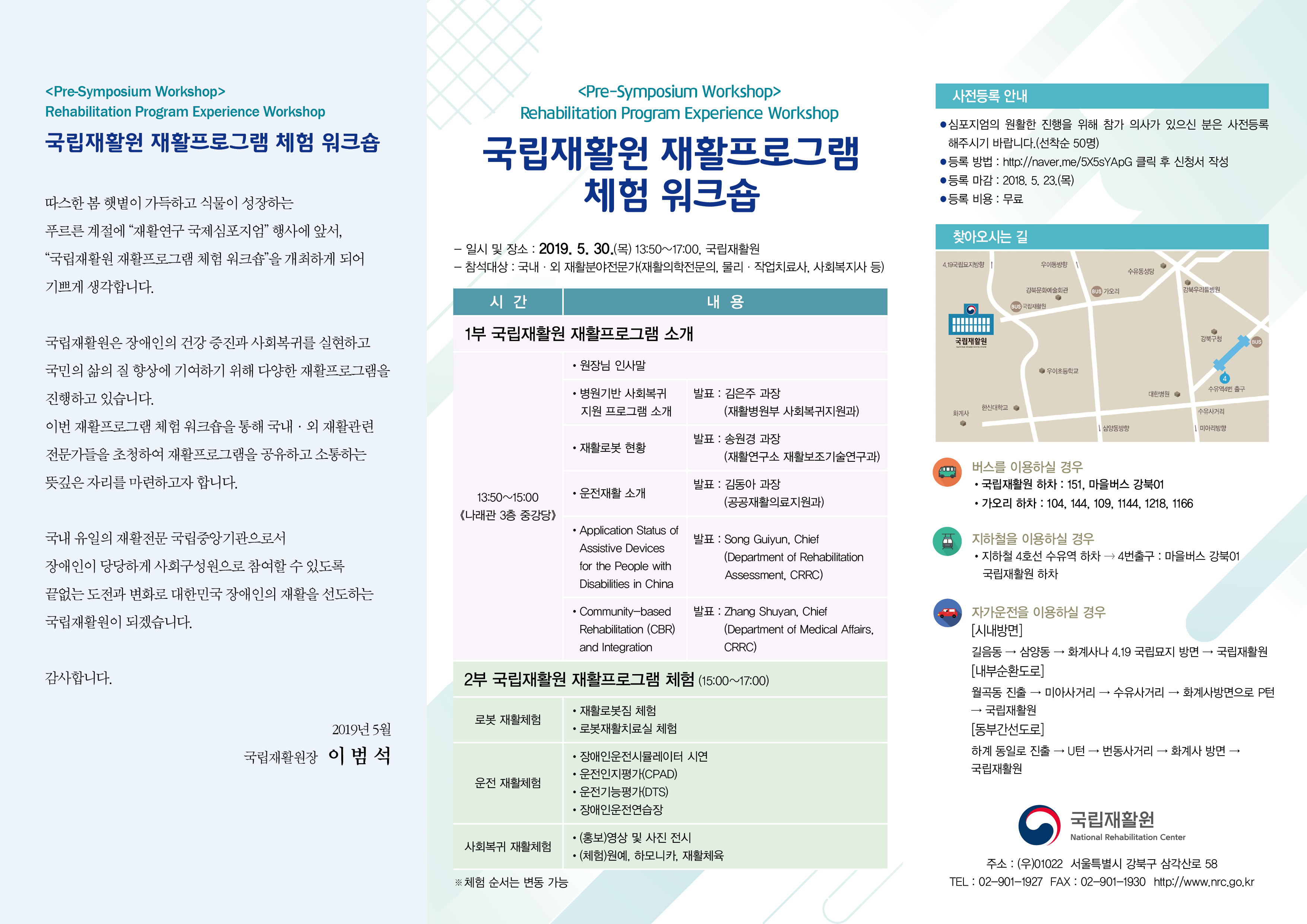 ○ Pre-Symposium Workshop 재활프로그램 체험 워크숍 : 장정아 연구원(02-901-1927)