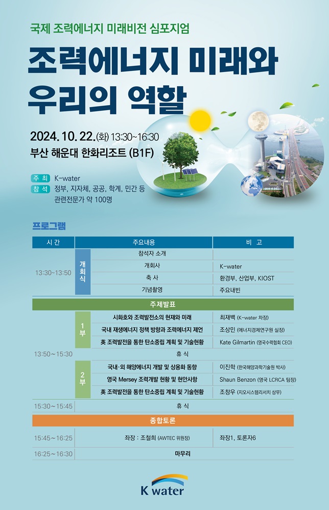 [한국수자원공사] 2024년 「국제 조력에너지 미래비전 심포지엄」행사 안내(10.22.(화)) 새창으로 읽기