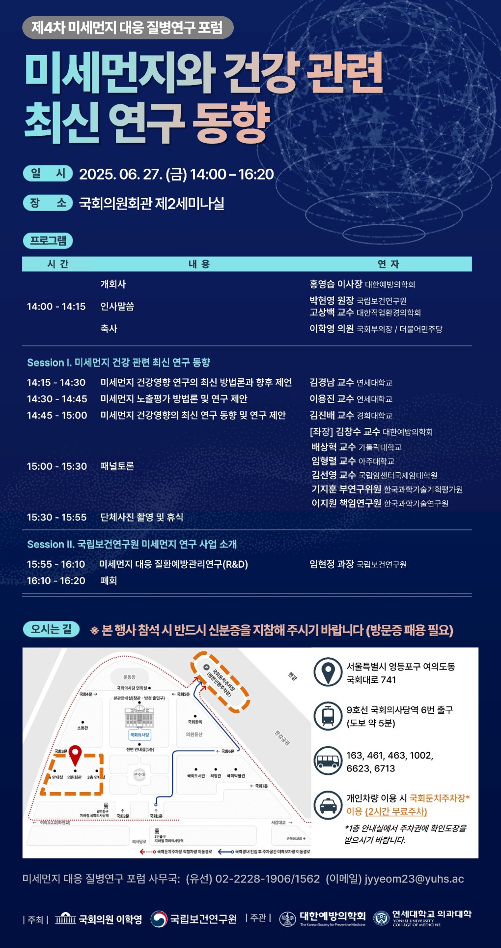 대한예방의학회, 연세대학교 의과대학 주관으로 제4차 미세먼지 대응 질병연구 포럼을 개최합니다.