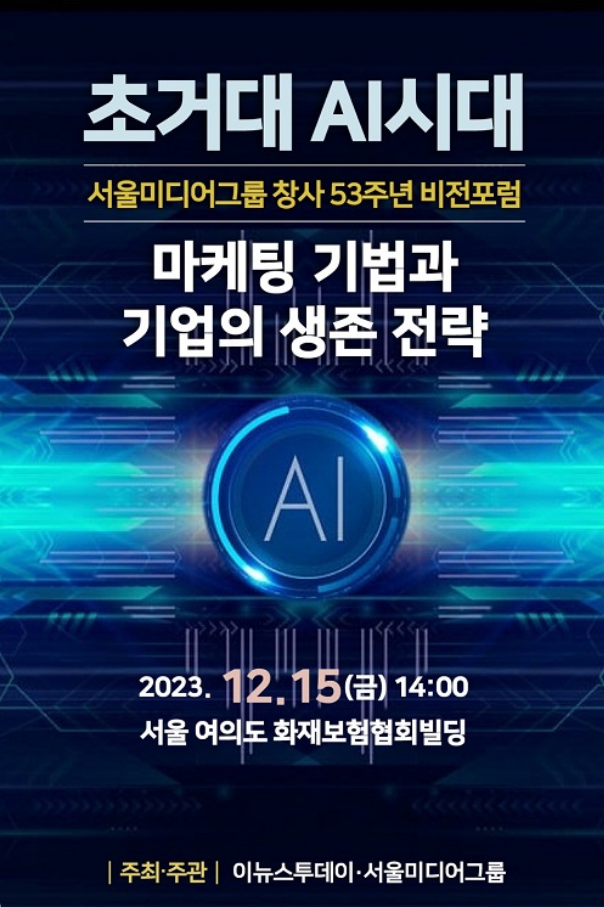2. 이뉴스투데이에서 서울미디어그룹 창사 53주년을 기념해 <초거대 AI시대 기업의 디지털 마케팅 기법과 생존 전략> 비전 포럼을 다음과 같이 개최합니다. 회원님들의 많은 관심과 참여 바랍니다.